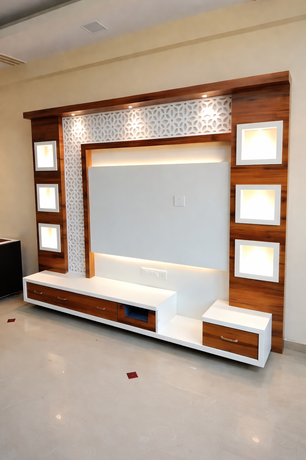 Looking for the best TV unit in Madurai? We offer stylish modular TV units, wall mounted TV units, and modern TV cabinet designs for living room interiors. Our range includes wooden TV units, TV showcase units with storage, and customized TV wall units made using high-quality plywood, MDF, and laminate finishes for durability and elegant design.